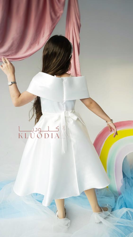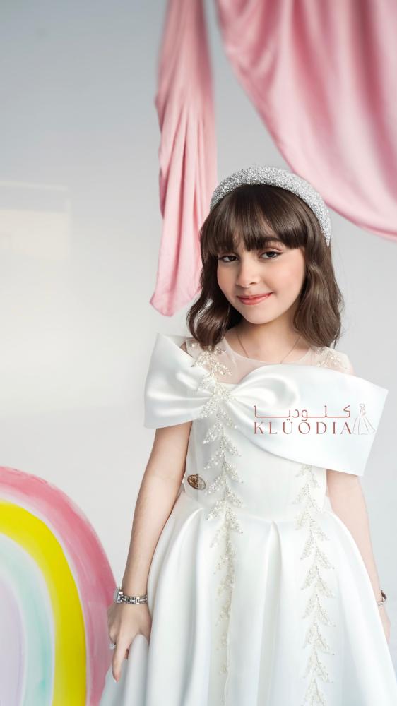 - يتميز فستان بناتي ابيض بتفاصيل راقية تمنح طفلتك مظهرا ملكيا ناعما مناسب لكل المناسبات الخاصة