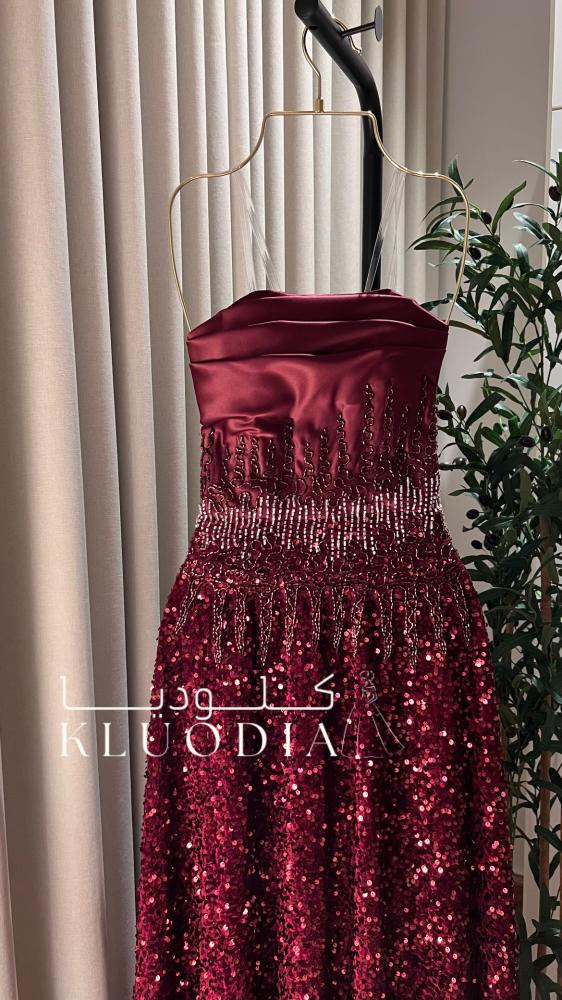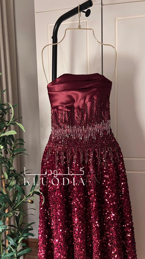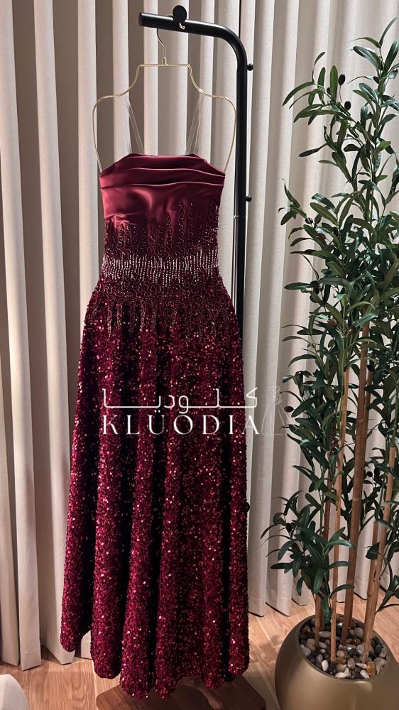 فستان سهره فخم توب مطرز الخامه؛ ساتان + ترتر مبطن مخمل